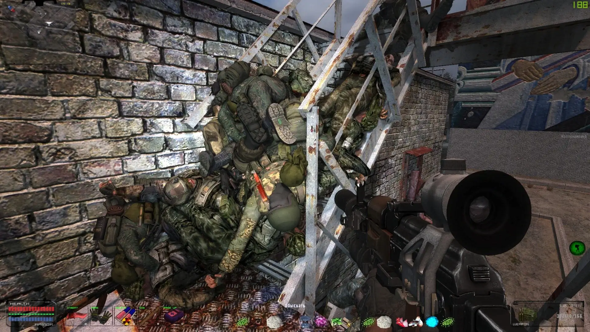 - Не спешим. Анти-достижение на слишком долгое прохождение мода убрано, поэтому можно позволить себе играть размеренно, вдумчиво и основательно. Все крупные вылазки и первые заходы на новые локации начинаем с раннего утра. Перестрелки ночью чреваты неподбором карт, девайсов и прочих квестовых предметов. Уборщик не удаляет теперь мёртвых НПС с таким содержимым, но трупы всё же гниют, поэтому потеря названных выше вещей остаётся возможной. Обыскиваем после сражений всех поверженных врагов внимательно. Иногда, в затяжных баталиях они могу валяться по всей локации;